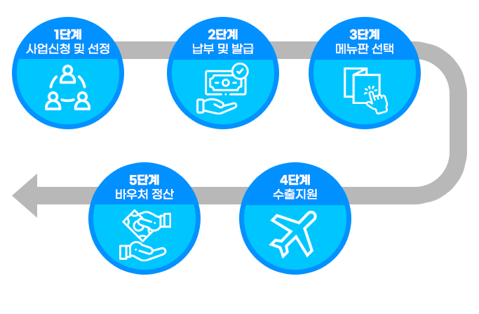 기업이 일정액의 자비부담을 하면, 그에 상응하는 국가 보조금을 정부에서 지급하고, 그 총액을 쿠폰 형태의 수출바우처로 지급하고 있습니다.