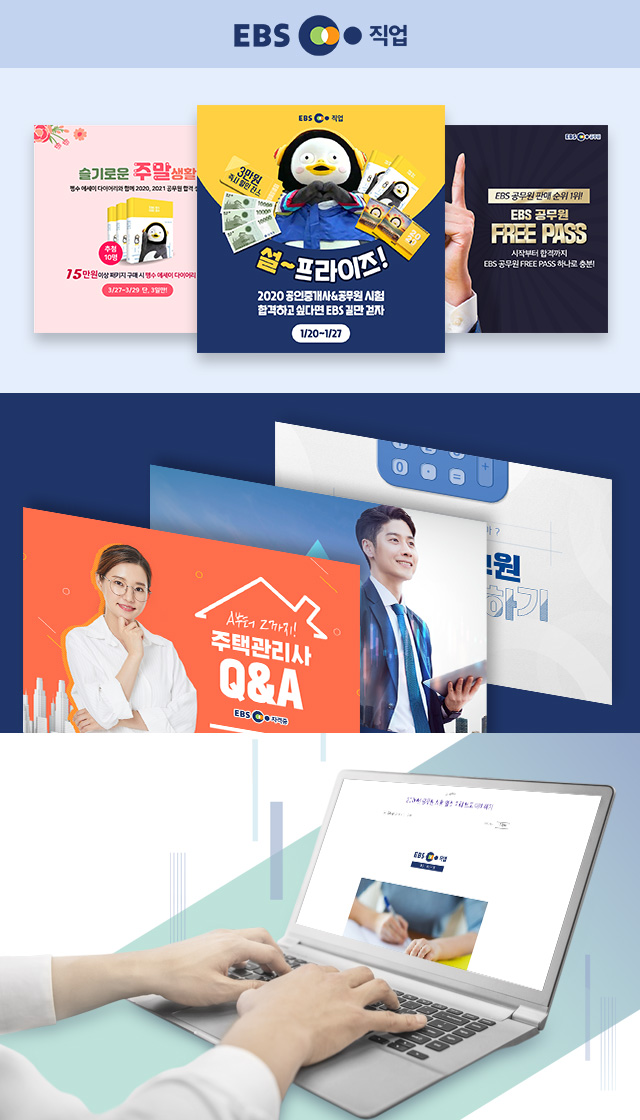 한국교육방송공사의 공인중개사, 공무원, 기타 자격증 온라인 강의 매출 증대를 위한 디지털마케팅 광고에 대한 미디어믹스를 설정하였으며, 페이스북, 블로그 공식